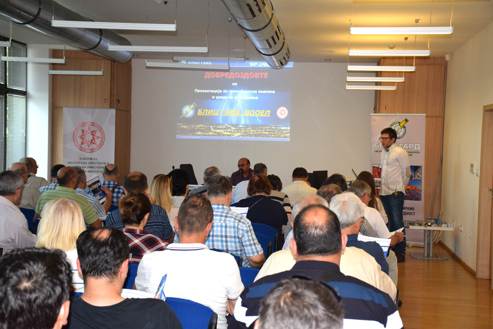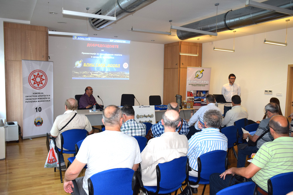 На 6 јуни 2018 година во Комората се одржа предавање на тема „Имплементација на системи за громобранска заштита од конвенционален тип“. Презентацијата на високо квалитетните системи за громобранска заштита и уреди за заземјување, од програмата на J.PRÖPSTER-Германија, една од најголемите компании во светот за производство на најсофистицирани елементи за надворешна и внатрешна громобранска заштита, ја спроведоа предавачите дипл.маш.инж. Кристина Николовска и Борјан Поповски од БЛИЦ ГАРД Скопје.