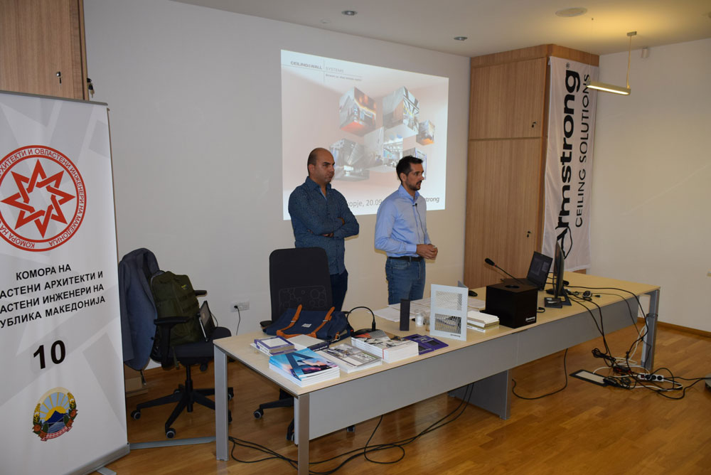 На 20 септември 2018 година во Комората се одржа предавање за архитекти од областа на проектирањето на плафонски системи. Гостин предавач беше Петар Тимотијевиќ од Armstrong ceilings – Македонија, Србија, Црна Гора.