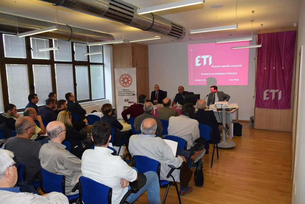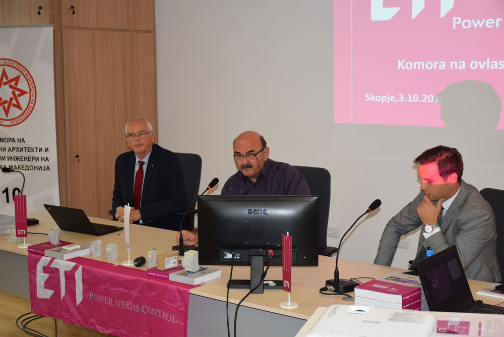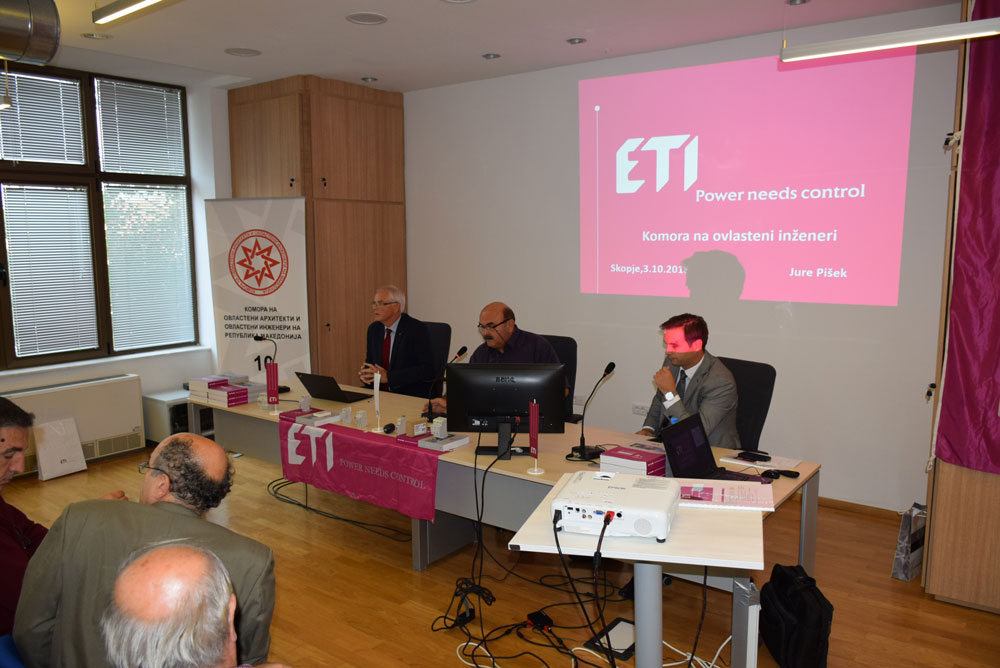 На 3 октомври 2018 година, во салата за конференции на Комората ОАИ, м-р Франц Јенко, дипл. ел. инж. од ETI Elektroelement, Словенија, одржа презентација на тема: „Пренапонска заштита во нисконапонските мрежи и заштита на фотоволтаични системи – Green Protect“.