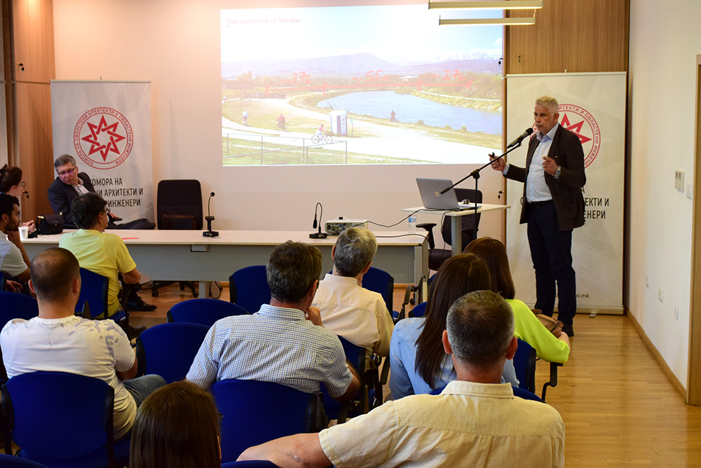 Професорот Горан Марковски, своето излагање го насочи кон елаборација на различни аспекти на проектирање, изградба, одржување и инспекција на мостови со коси затеги. Тој, исто така, напомна дека Европските - стандарди за проектирање градежни конструкции се донесени и се на сила сила во РС Македонија од 2 септември 2020 година, а по завршувањето на преодниот период, од 2 септември 2023 година, сите конструкции во државата ќе мора да бидат проектирани исклучиво според Еврокодовите.
